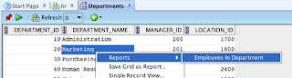 Step 3. Create a "Employees By Department" report. This report will use a bind variable from the Departments report which is the DEPARTMENT_ID column from the query.