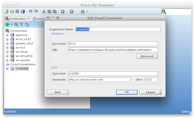Cloud accounts are trickling out so figured I'd do a quick post showing how to connect SQL Developer to the Database Service. Check out http://cloud.oracle.com for details on the service offerings and to sign up for a trial.