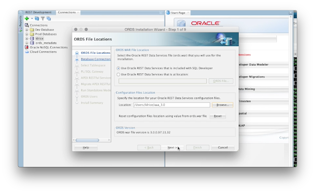 Some of the feedback we received was that ORDS was difficult to setup and running. This prompted an overhaul of the install process. There is now a few ways to get going. As with earlier releases, there is a command line. There is now a 'simple' , 'advanced' , and an option to parameterize ( silent ) install. The simple is the default and will ask minimal information. The catch is that it will make assumptions. Some of those assumptions like a USERS tablespace may not work for your database. In this case try the advanced, it will prompt for _everything_ and then some for a fully customized install.